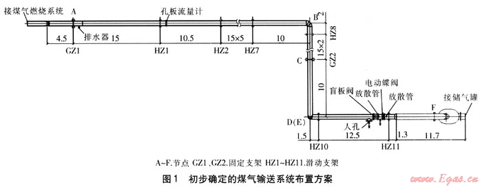 根據(jù)校核計算,初步確定的煤氣輸送系統(tǒng)布置方案滿足動力管道設(shè)計要求,確定為最終方案。