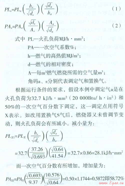 如前所述,本文是介紹美國燃?xì)饣Q性的求解公式,在此,先說明燃?xì)饣Q前后,火孔負(fù)荷和一次空氣系數(shù)發(fā)生變化的計算公式,以加深對這些公式應(yīng)用的理解。公式導(dǎo)出的過程則隨后有所論證。
